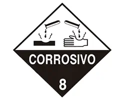 Sim, a etiqueta adesiva já é entregue com a simbologia da Classe 8 (Corrosivos) impressa em alta qualidade. O espaço restante pode ser usado na sua impressora de etiquetas para personalizar informações técnicas do produto.